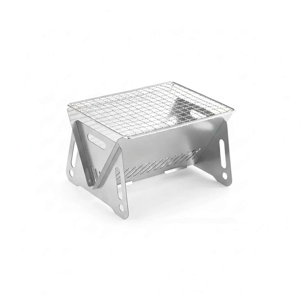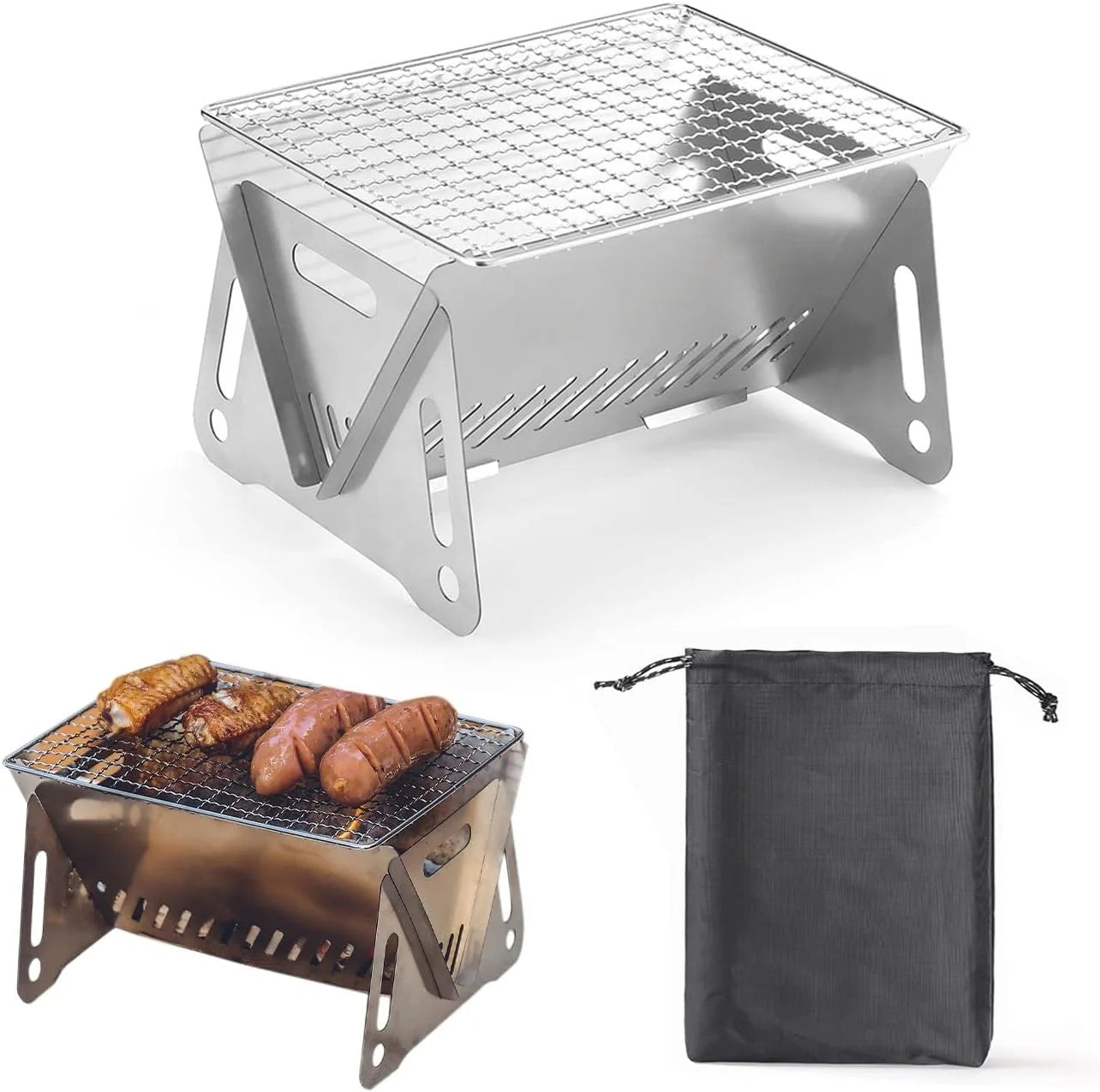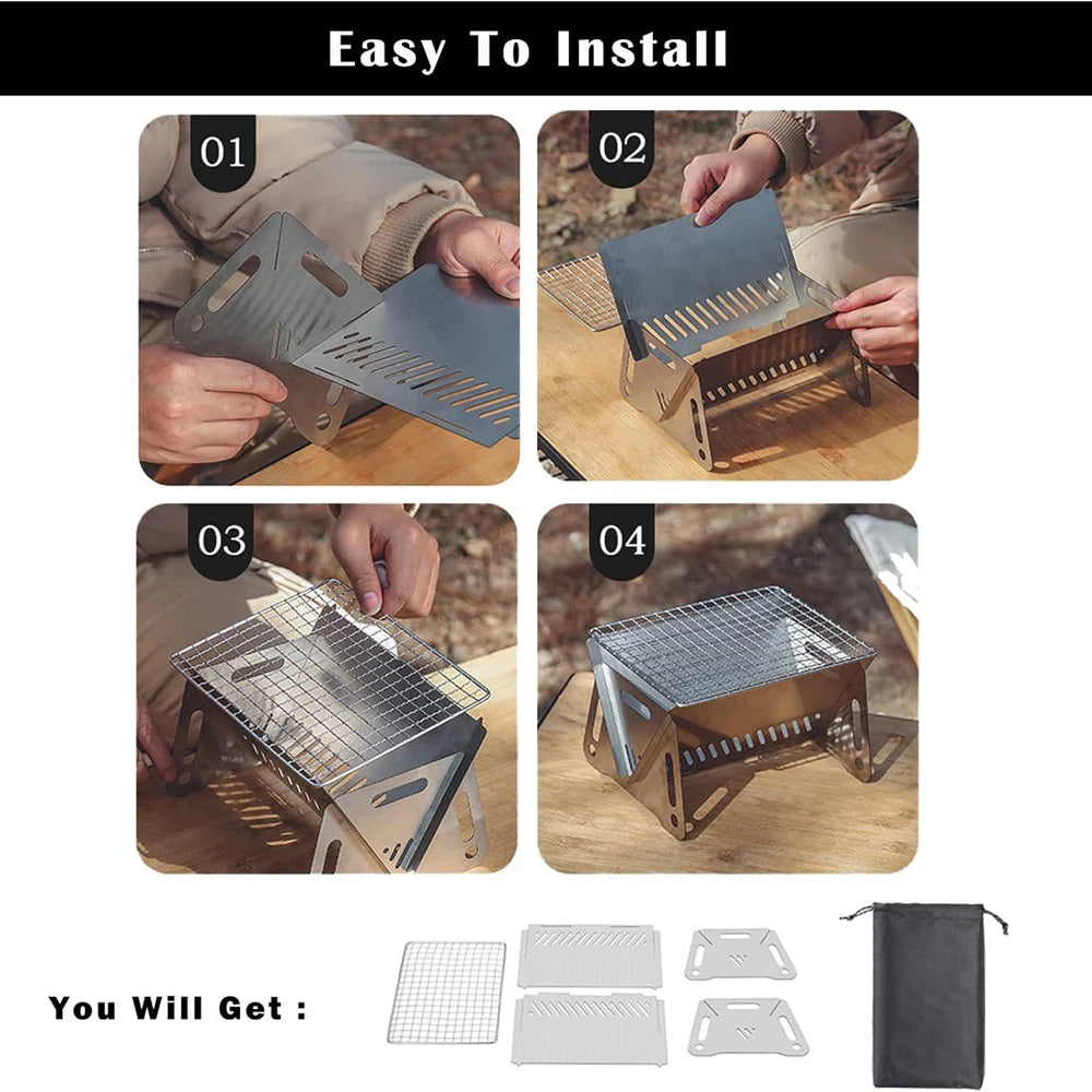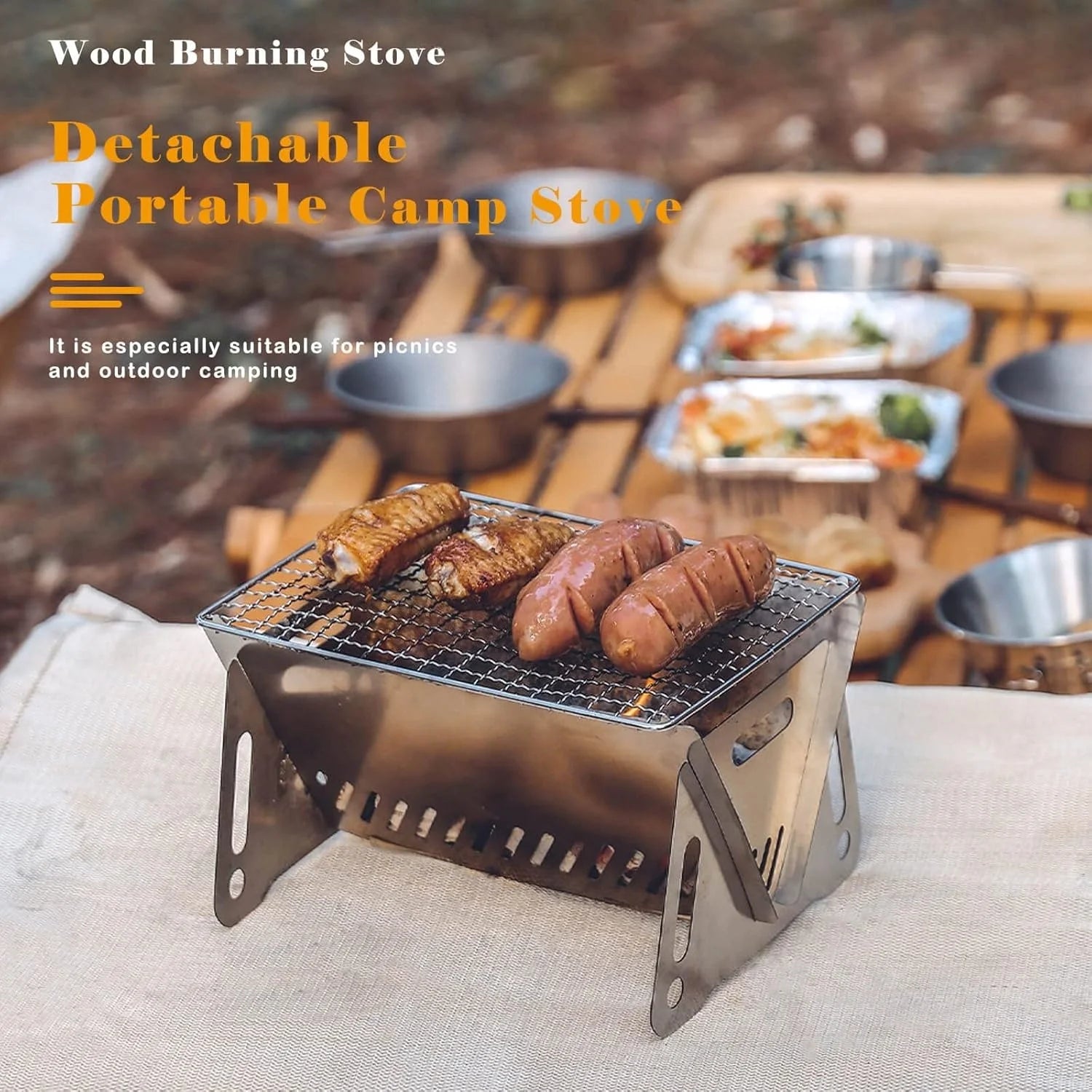 Woodstovestation Folding Backpacking Stove - Stainless Steel Charcoal BBQ Grill for Camping & Hiking, Portable & Eco-Friendly